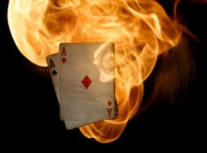 Vakar bija tā diena, kad devos uz No Limit Texas Hold’em Freezeout (buy-in 100ls) turnīru, uz kuru kārtējo reizi biju izcīnījis biļeti satelīta turnīrā. Sākums bija visai grūts, jo kārtis praktiski man vispār nenāca. Tā nu es turējos pie sākotnējā čipu skaita. Tuvojoties fināla galdamienāca AQ un es liku gandrīz pusi no saviem čipiesm, tad viens no oponentiem ielika all-in. Es ilgi nedomājot pielīdzinājos. Pretinieks parādīja KK. Biju sagatavojies iet mājās, kad Flopā nekā nebija. Bet tad uz Turn kārts atnāca A un es paliku turnīrā…